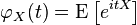 X는 랜덤 변수고, t는 (시간, 공간 등에 대한) 빈도에 대응하는 변환 변수며, E는 기대값 상수다.